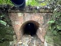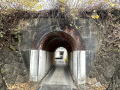 | 下流の東側は車道が上を通っている為、拡幅 されている 一応車道ではあるが、車種を選ぶ 上流の西側は坑門がなく、岩盤に直接アーチ環を 嵌め込んでいる 岩盤という堅固な地質だからなのか、アーチ環が 3層しかない 2025年12月訪問 |