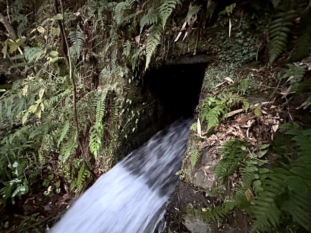 ![]() 2013年2月のストリートビュー画像をお借りした。 七又集落方面から隧道を使い送られてきた水が、あの隧道出口から画面右手前を通って南に送水されている、いわゆる疏水路と思われる。 あの隧道出口すぐに制水門があり、線路方向に窪みがあることから、そちらに排砂路が続いていると思われる。 その排砂路がまさにこの石桁橋梁であると推測する。 |