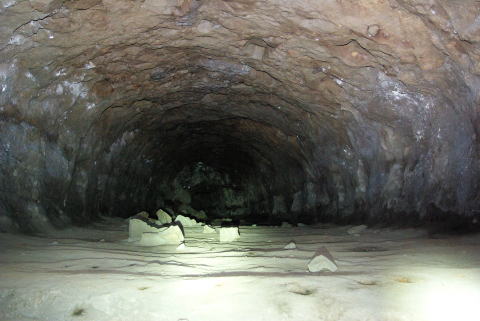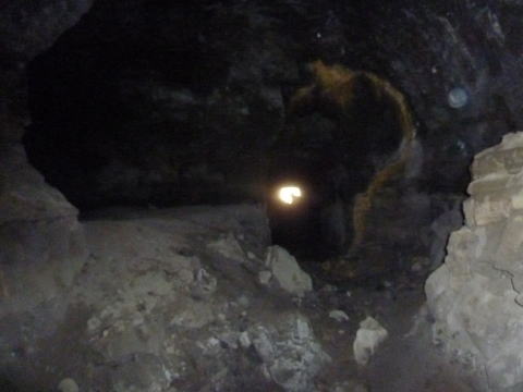 〜東8坑〜![]() ぬぅおっ!? なんじゃこりゃ〜!!!?思いっきり掘りかけやないか〜! でかい空間はできつつあるが、両端の掘り下げが思いっきり途中です。 二段掘りの教科書みたいな残り方です。この両端の部分だけでも背丈を超えます。 で、こっちは西向き、出口の光が見えますな。 (写真提供:おろろん氏)←ありがたい! |