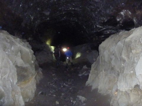 東8坑本坑西進中のおろろんさん。 どうですかこの両端の掘りかけの 高さ!規模がすごい。 |