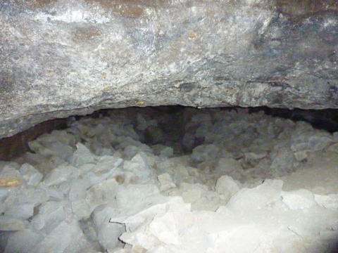 写真で見るよりは空間はあり、抜け ることができました。 しかし、この溜まってるのは全部ズリ ではないでしょうか。掘って出た瓦礫 で、崩れたような印象はありません。 |