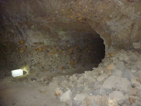 北13坑へ接続する、はずの横坑です。 うーむ、大分洞穴の様相を呈してきましたな。 |