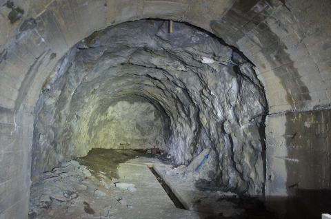 見事に素掘りの洞内。 しかしながら綺麗にアーチ状に成形されて います。 |