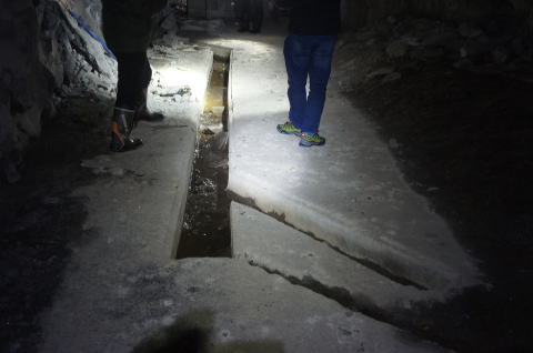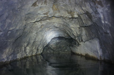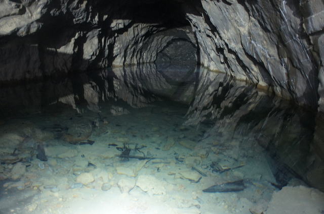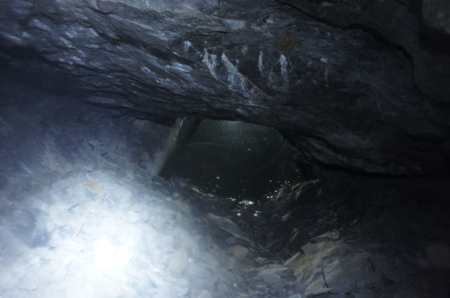 ![]() そんなことで諦められません。なんとか潜り込むことに成功しました。 3年4か月振りのI坑!そこは相も変わらず満面の水を湛えておりました。 |